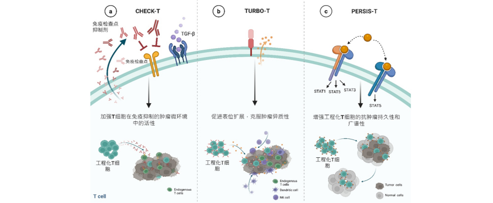 先進(jìn)細(xì)胞裝甲平臺(tái),通過(guò)裝備過(guò)繼性細(xì)胞療法(ACT)使其突破腫瘤微環(huán)境(TME)屏障及異質(zhì)性,提升實(shí)體瘤治療的安全性、浸潤(rùn)性和持久性。